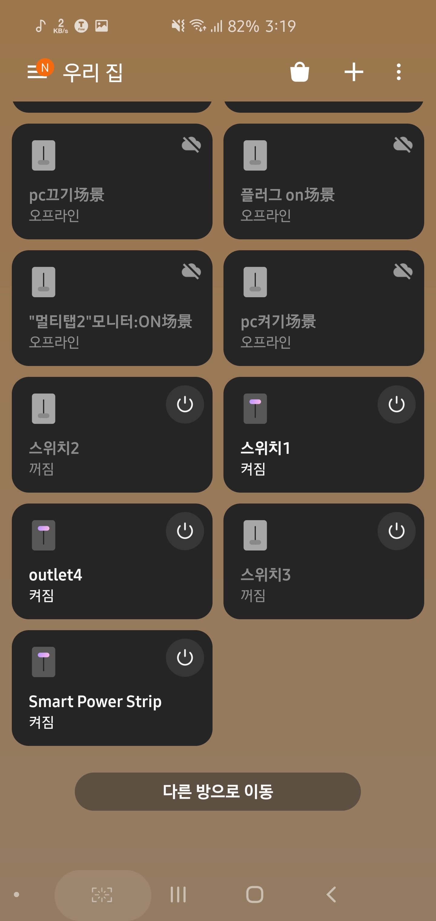 세번째가 스마트싱스 앱에서 연동 했을때 화면이다