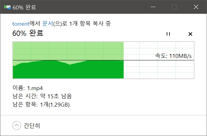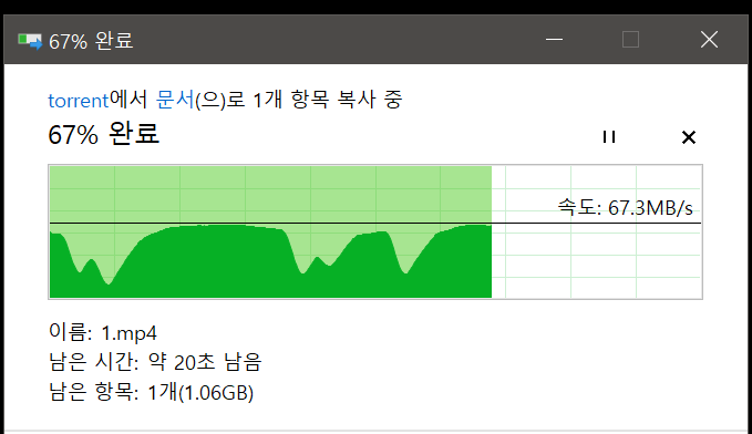 우측은 1.7Ghz 일때 NAS 와의 파일 복사 속도