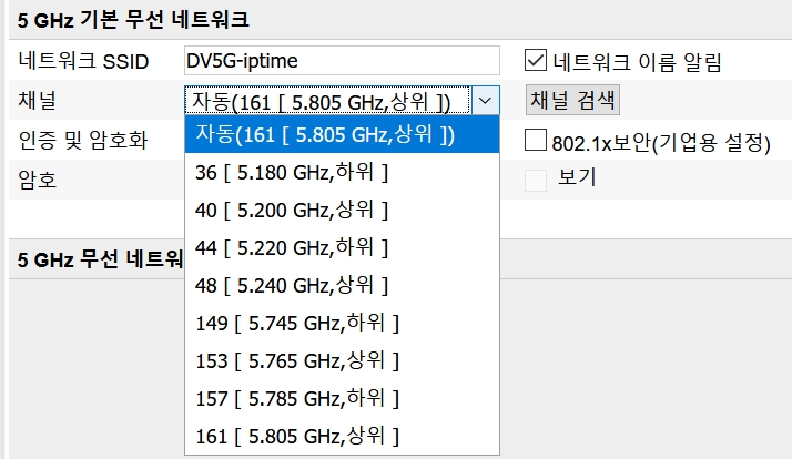 1. iptime 공유기의 채널수가 적은건 구형이라 그런거임 DFS 채널이 없으니 리스트에 저거 뿐이 안보이는거고