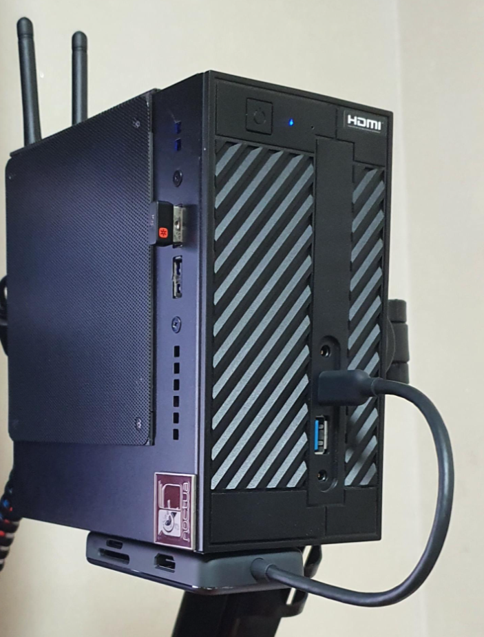 asrock deskmini A300 베어본의 전면 usb-C 포트를 사용할 방법을 고민하다 저렇게 허브를 매달면 되겠다?!