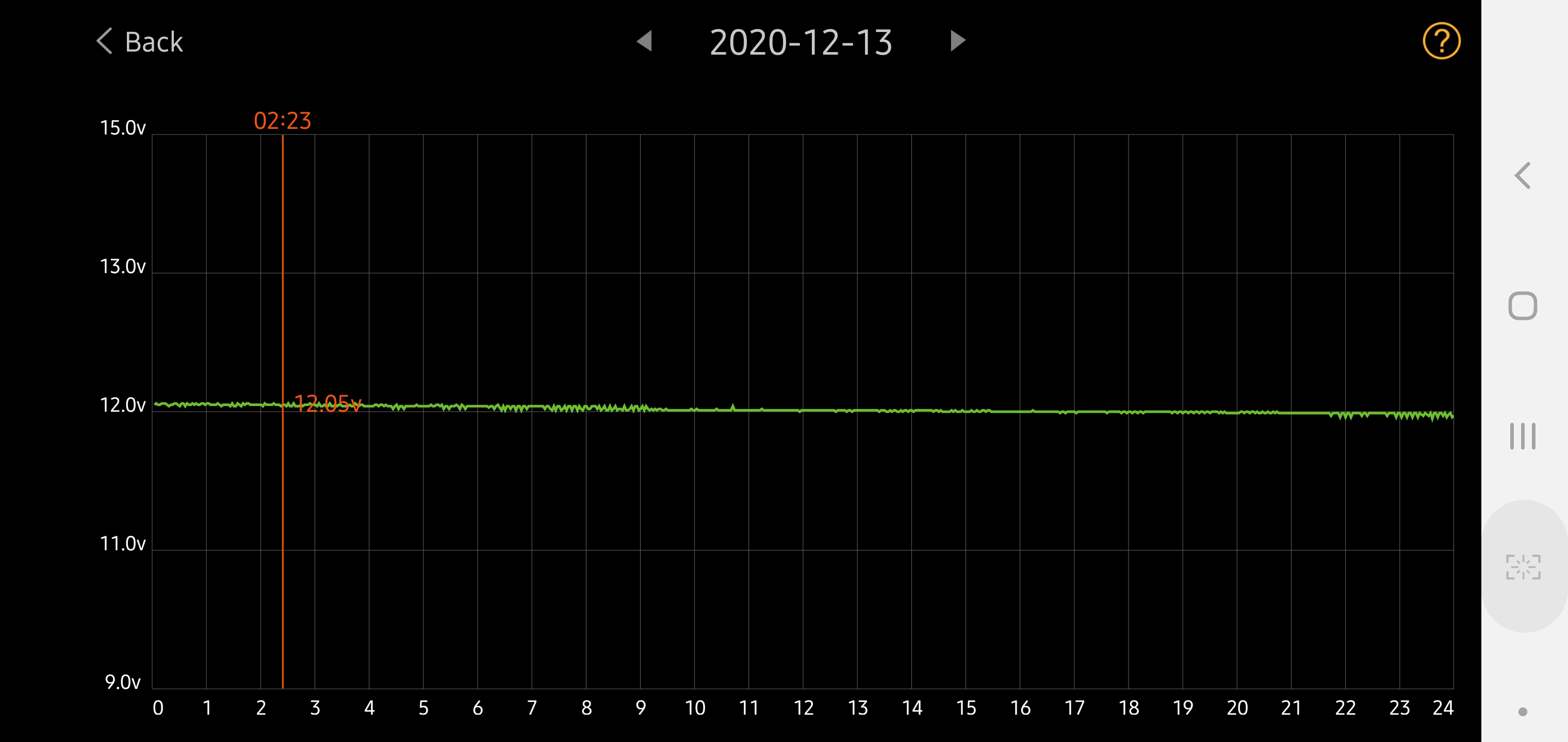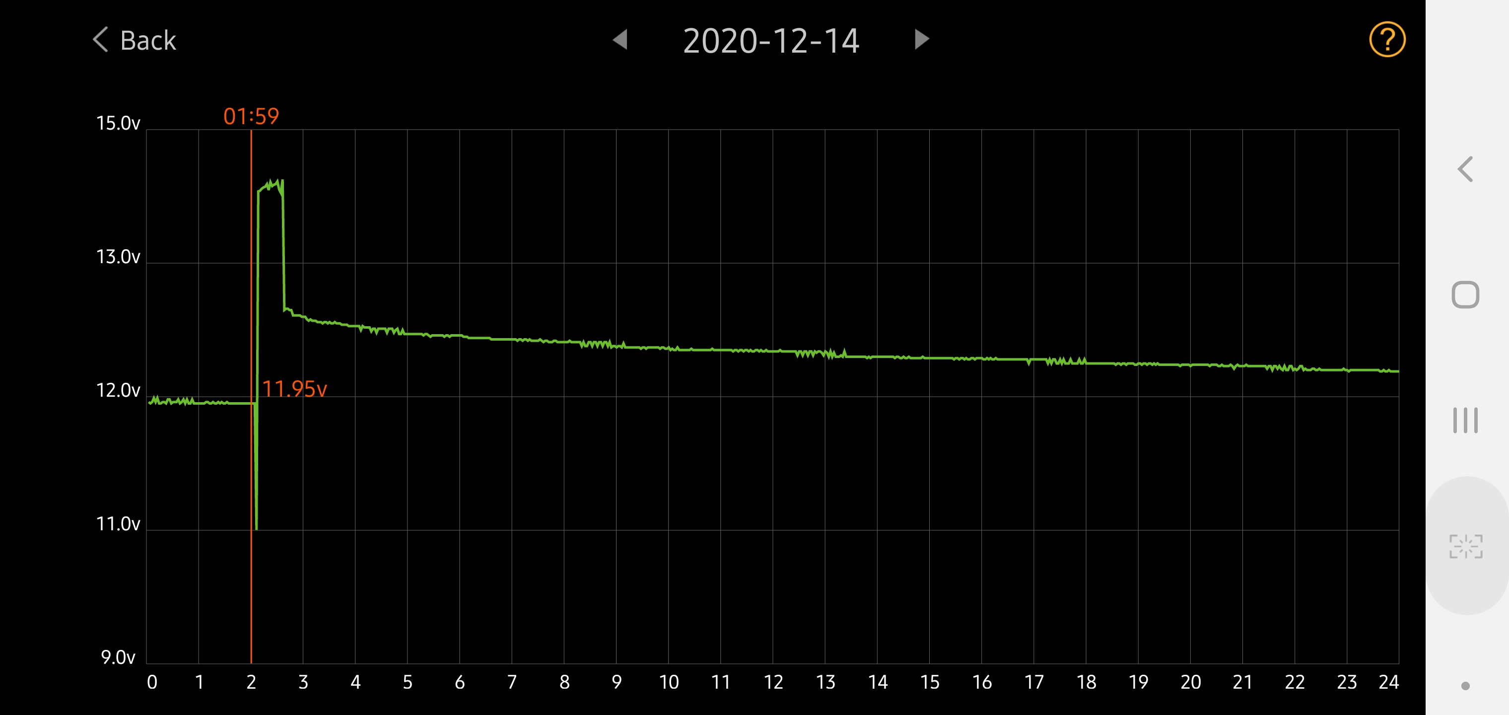 기존에는 24시간 기준으로 12.68v -> 12.26v -> 12.05v -> 11.95v 로 하루에 0.42v , 0.21v, 0.1v 순으로 강하 되었다.