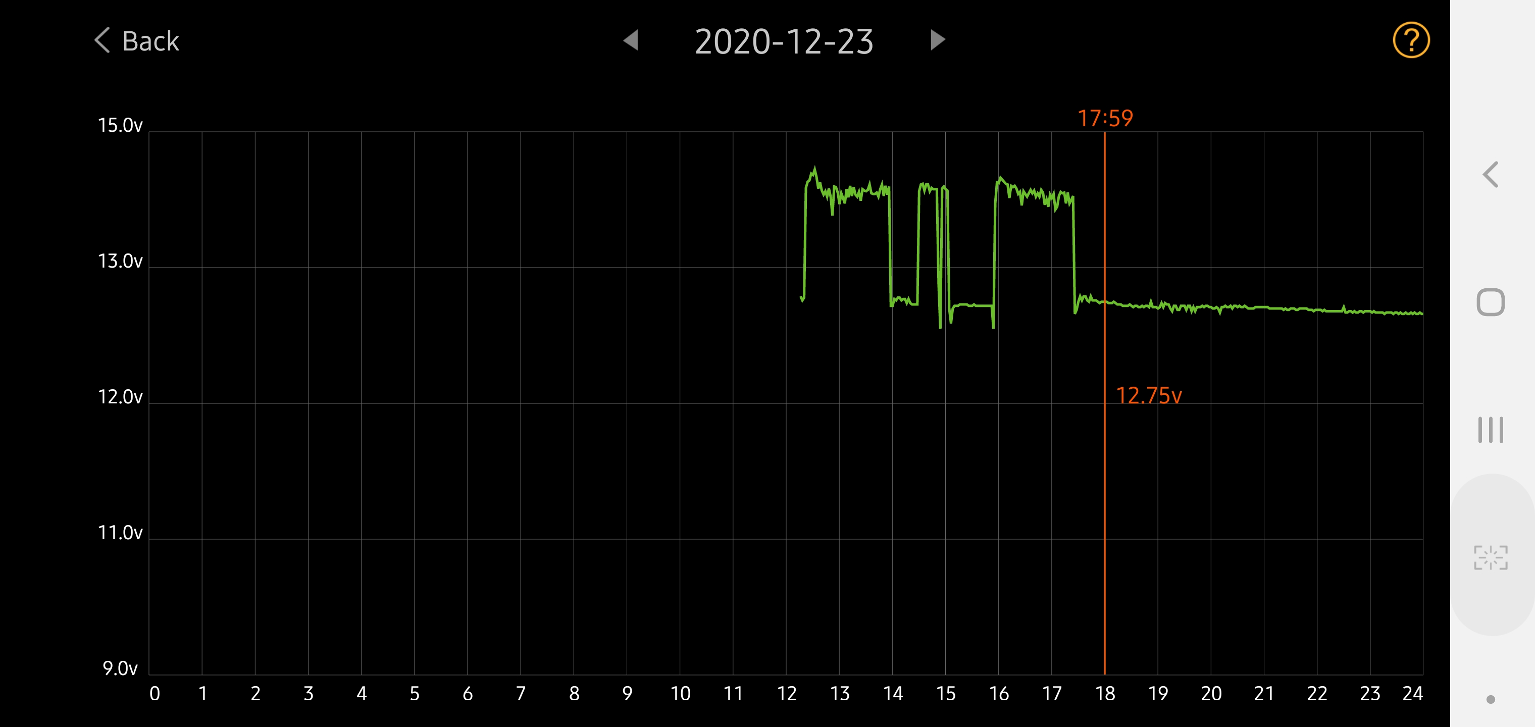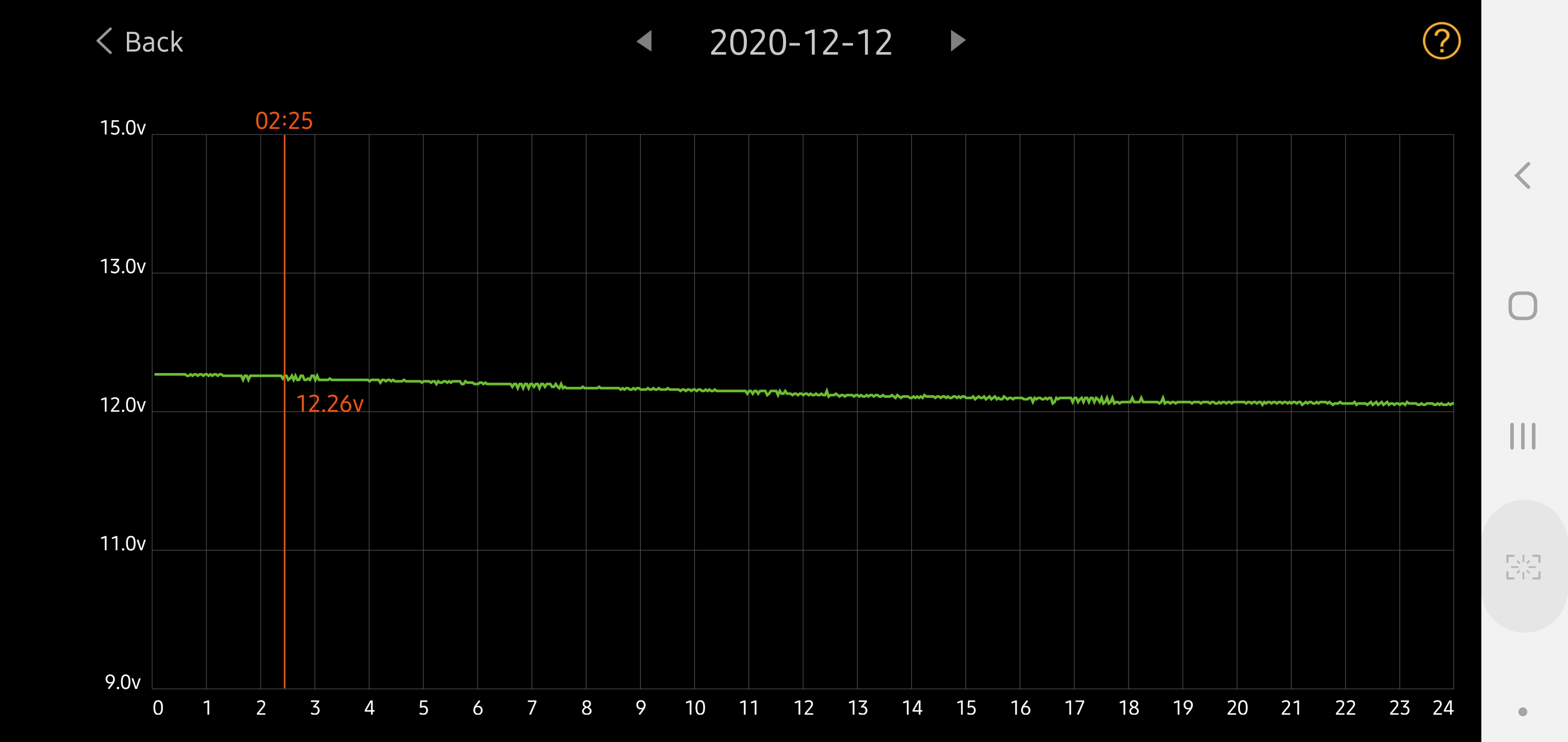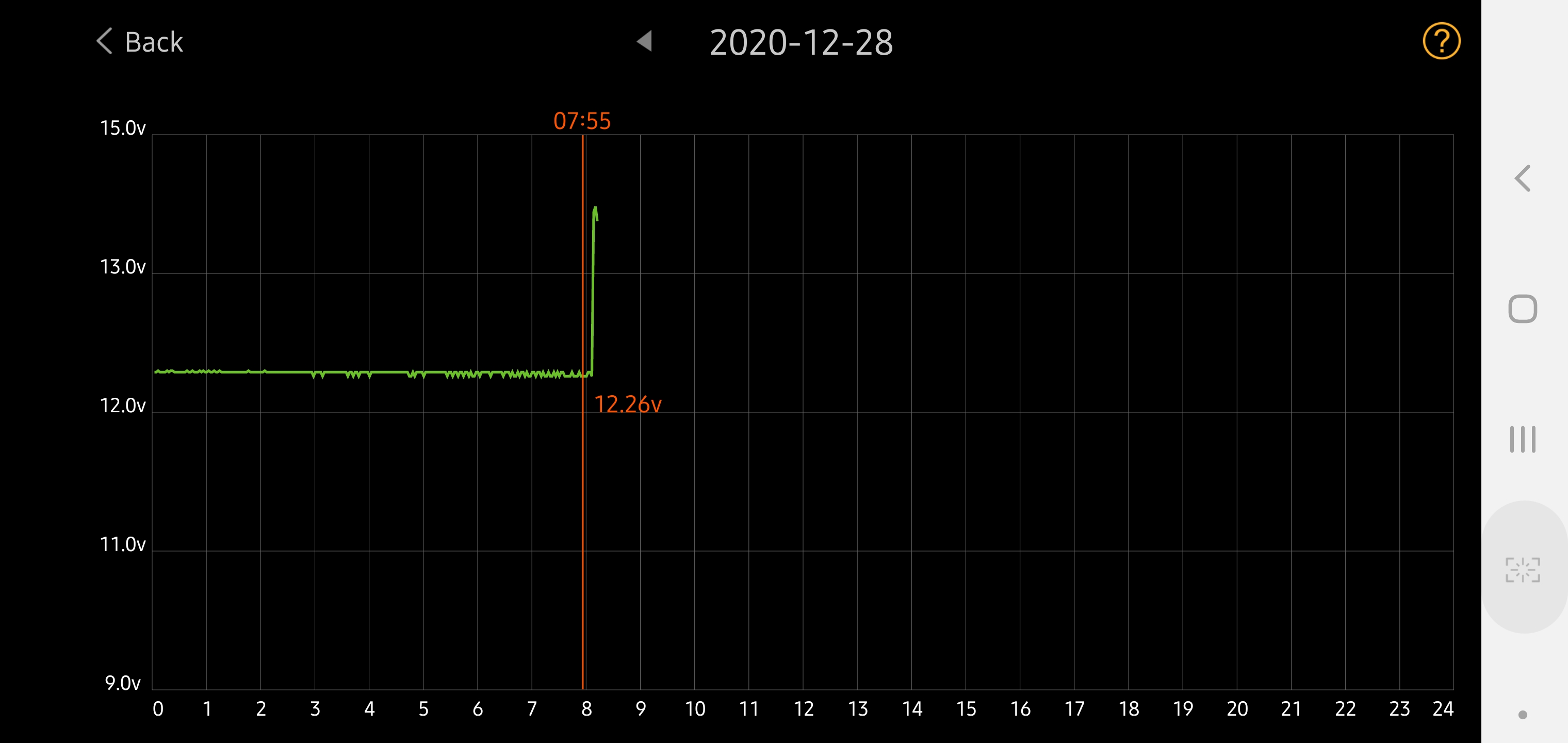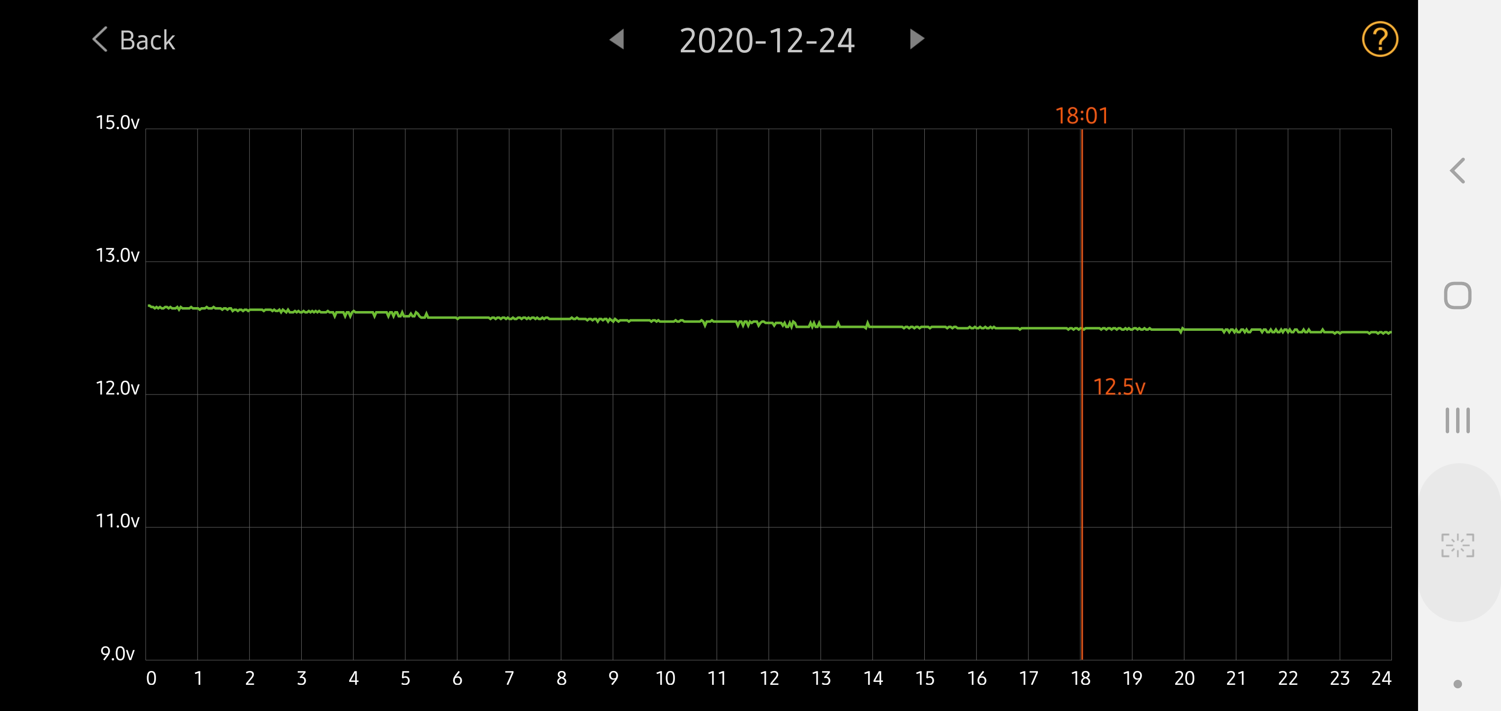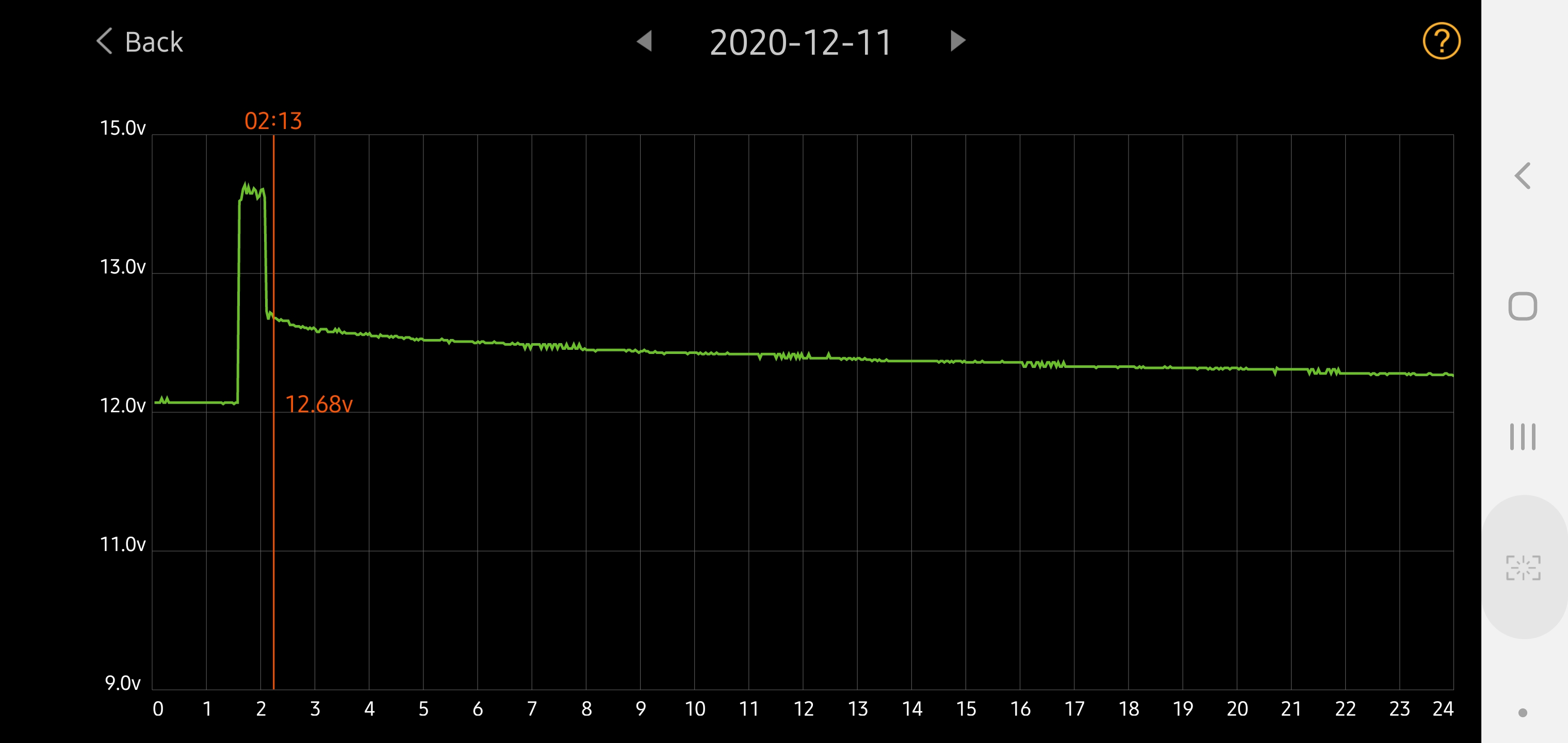 기존에는 24시간 기준으로 12.68v -> 12.26v -> 12.05v -> 11.95v 로 하루에 0.42v , 0.21v, 0.1v 순으로 강하 되었다.