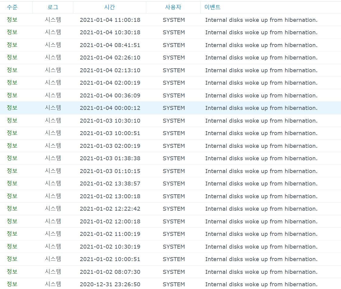 시놀로지 NAS 절전모드 해제 원인 찾기 2021.04.20 본문