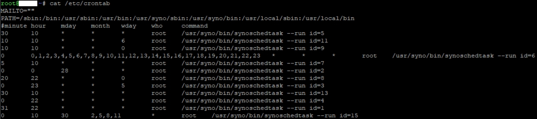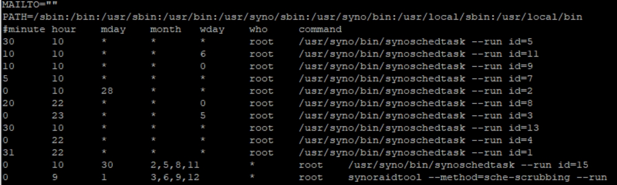 NAS가 특정 시간마다 깨어나는 느낌을 받는다 뭔가 이상하다 싶어서 보고 있자니 매 오전 10시, 매 오전 10시 30분, 매 오전 11시 등등 반복이 된다. 누가 자꾸 정시에 일으키는건지 찾도록 해보자