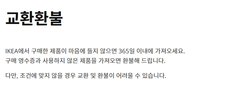 이케아는 남달리 제공된 소재에 대한 보증 이었음