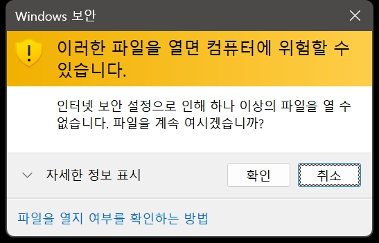 인터넷이 아닌 로컬인데 왜????? 인터넷 보안 설정????? 납득 할 수 없다.