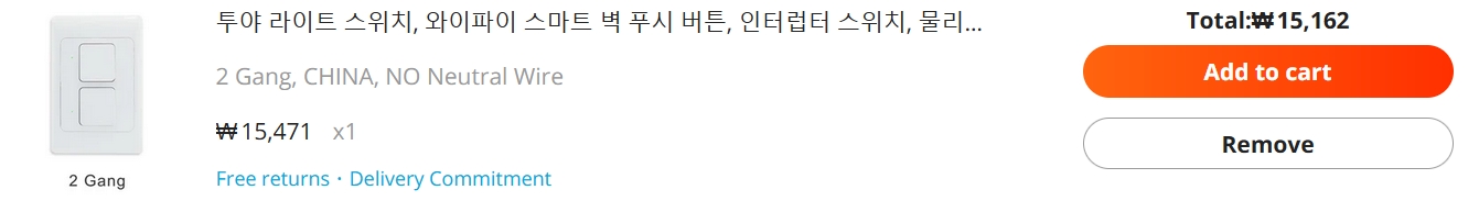 알리에서 투야(스마트 라이프) 2구 짜리 wifi 스위치 구매