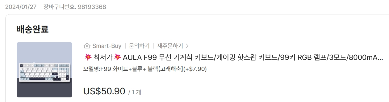 24년 1월에 구매 요즘 인기 있는데 1월에는 F87만 인기 있었지만 키패드가 필요 했기에 F99 라는 변종을 구매 함