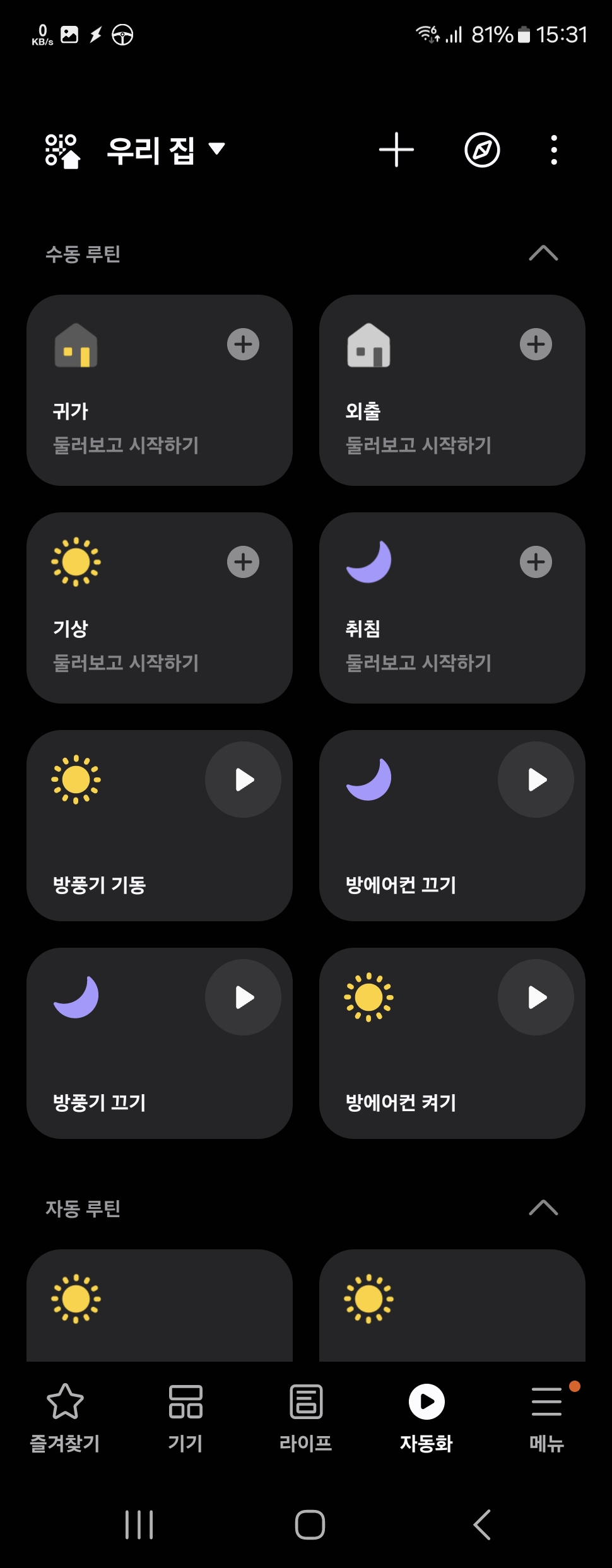 좌측의 수동 루틴을 따로 만든 이유는 위젯 버튼용으로 쓰기 위해 만들어 둔거다