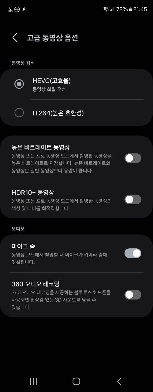요즘 최신 휴대폰으로 찍은 영상들은 hevc 코덱 즉 h.265 를 사용한다.