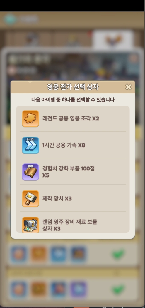빨간색 영웅 전가 선택 상자 에서는 설계스케치나 보석 관련 템 추천