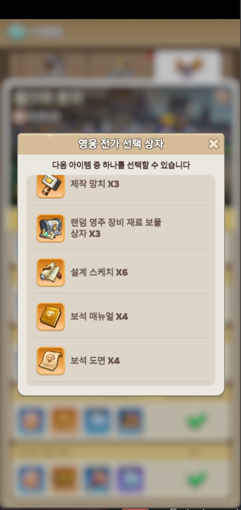 빨간색 영웅 전가 선택 상자 에서는 설계스케치나 보석 관련 템 추천