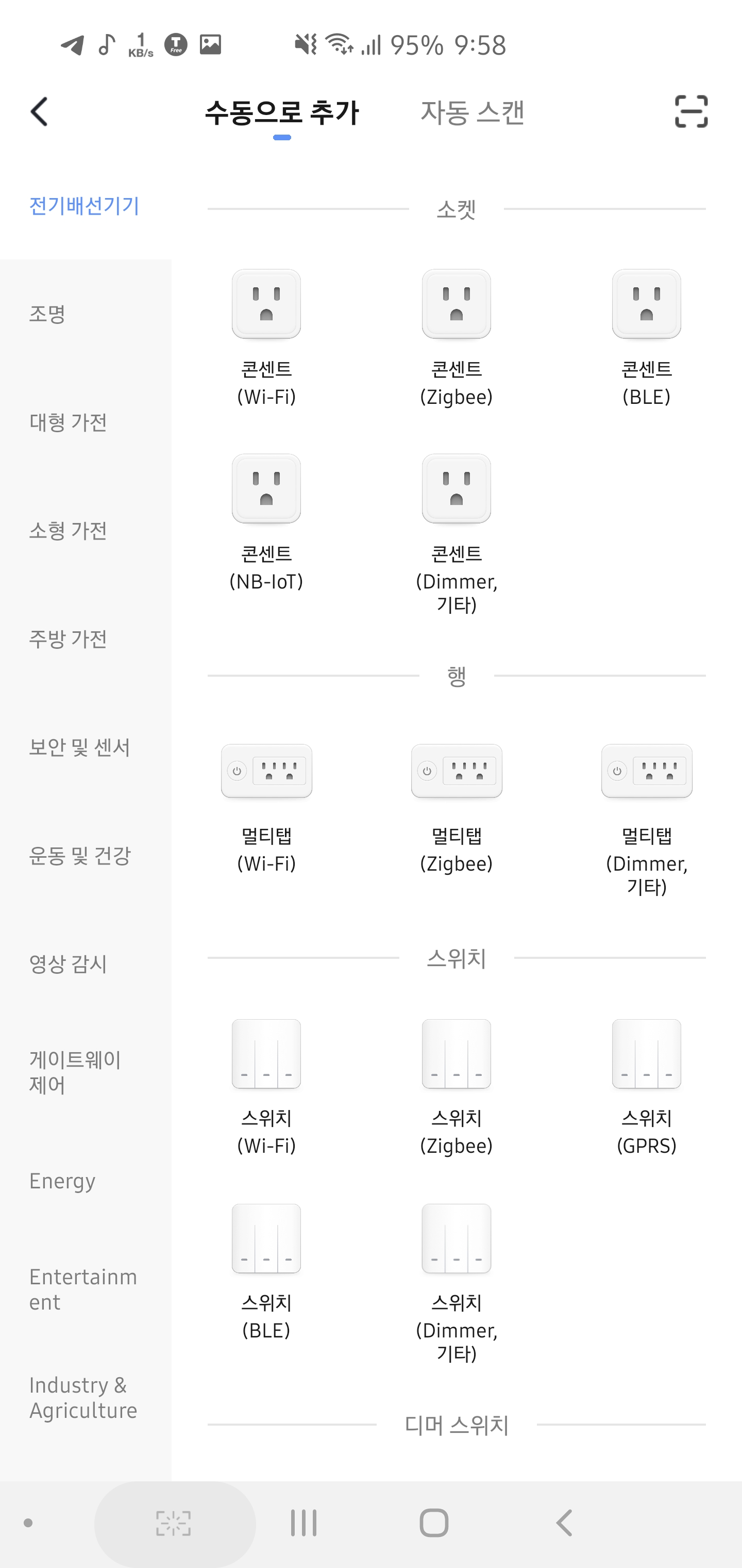 계정 생성하고 기기 추가 하면 좌측의 콘센트 (Wi-Fi) 를 선택