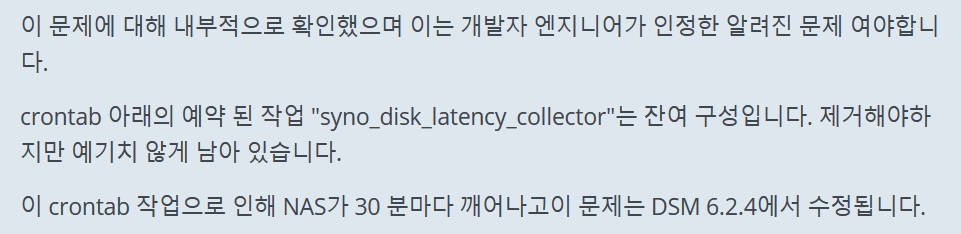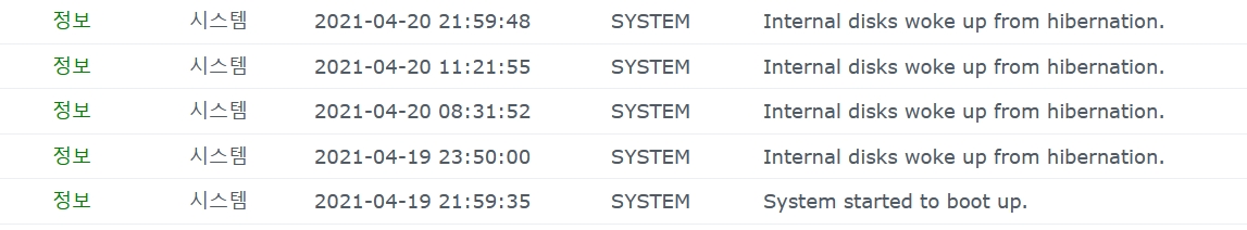 시놀로지 NAS 절전모드 해제 원인 찾기 2021.04.20