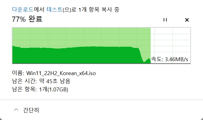 유선랜이 안정적이나 SSD는 캐싱 문제인지 대용량 전송에는 적절하지 못함을 보여줌...
